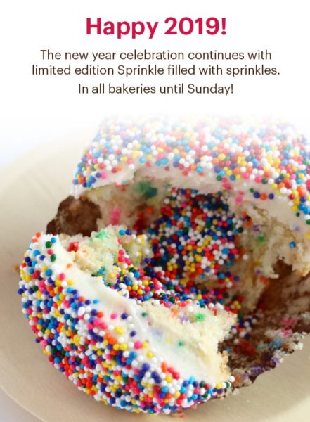 The Sprinkle cupcake will be filled with SPRINKLES from today through January 6th.