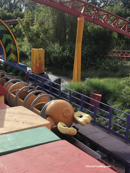 When we got to Slinky Dog Dash we noticed something was missing. Slinky’s tail has been removed from all of the cars on this popular attraction. We hear the tails have been removed for safety reasons, and they are expected to return in some fashion soon.