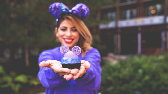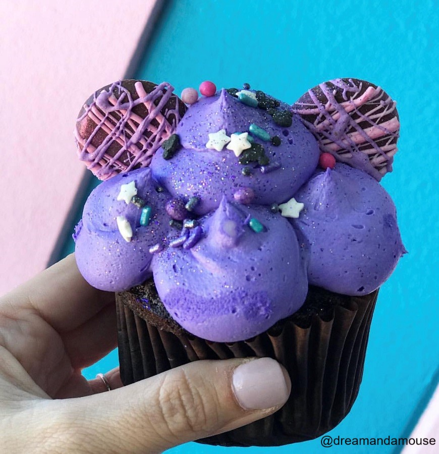 Disney’s Contemporary Resort, Contempo Café: A strawberry cupcake filled with purple sprinkles topped with lavender buttercream and purple Minnie ears