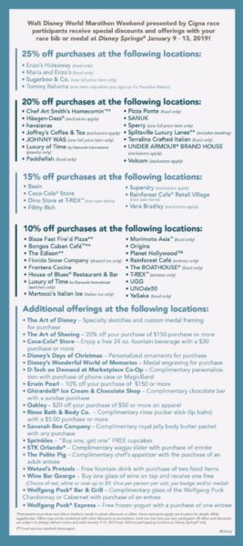 When you stop by the runDisney Health & Fitness Expo to pick up your race packets, you’ll want to stop by the Disney Springs booth to grab your participant discounts and offers guide!