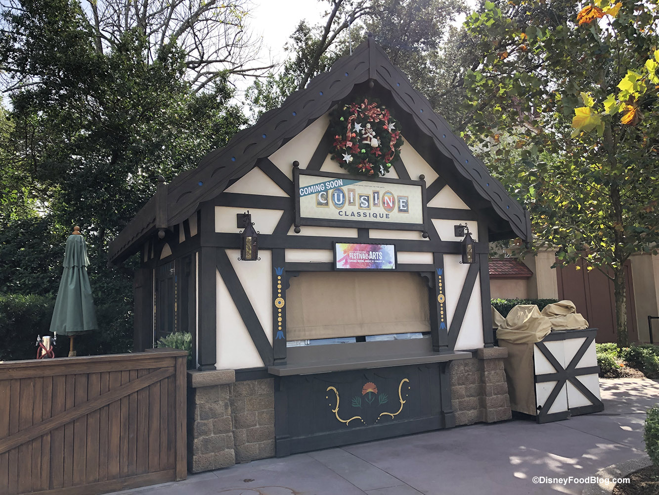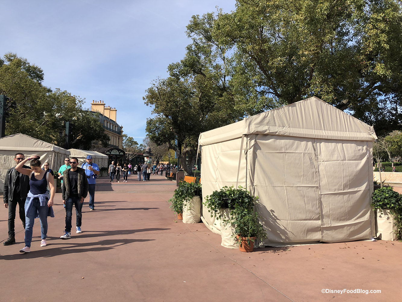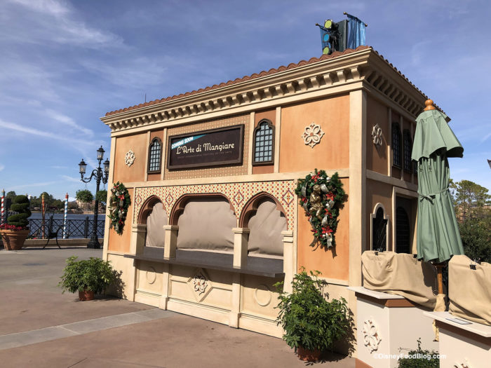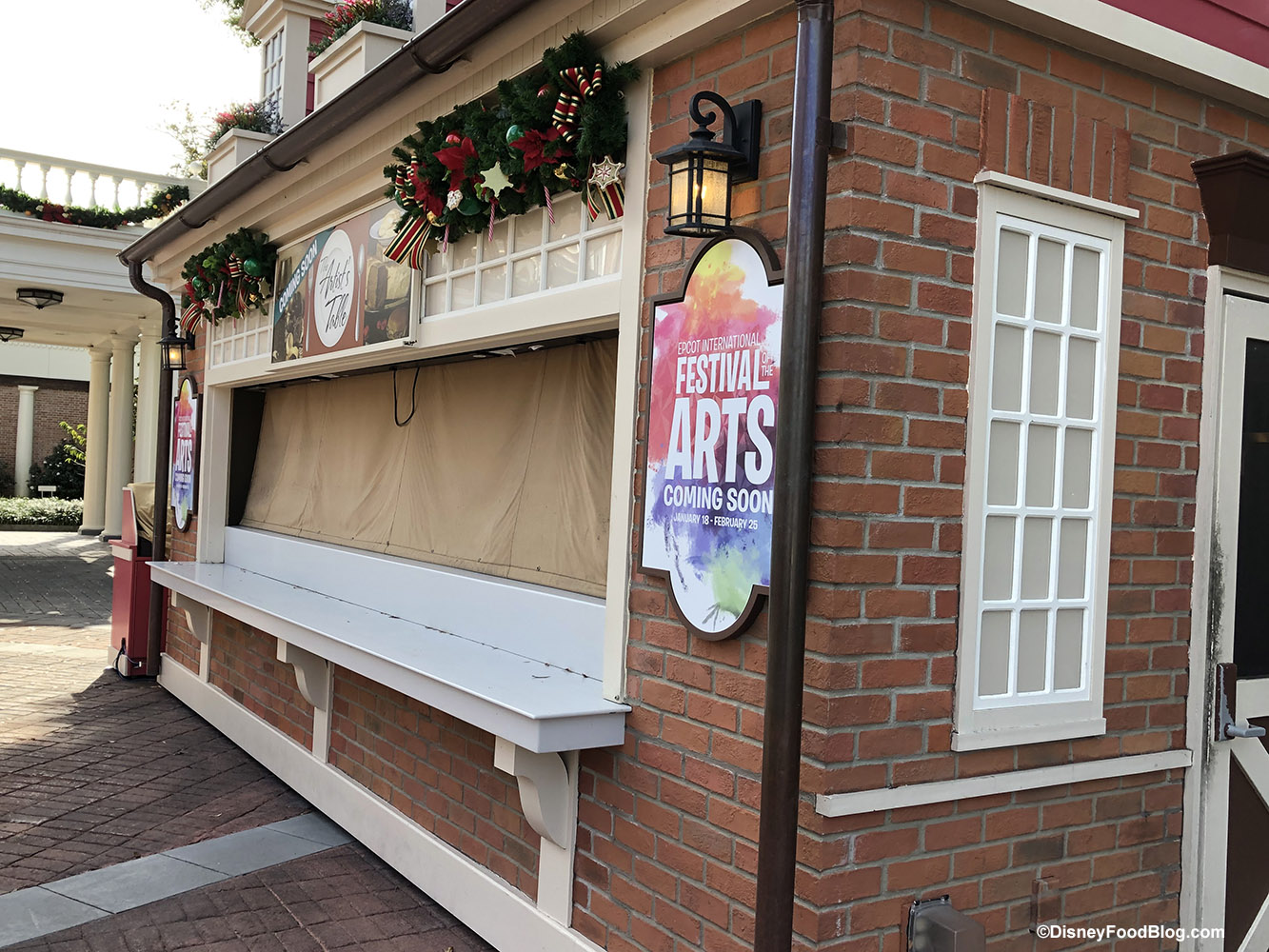 It’s definitely looking a little more artistic around Epcot this week as the park prepares for the opening of the Festival of the Arts next Friday, January 18! During our visit to Epcot this week we spotted the booths in the process of changing over from the Festival of the Holidays to the Festival of the Arts, as well as other sure signs a new Festival is about to begin!