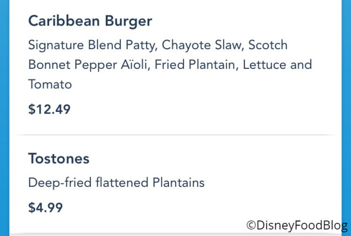 The second item are deep-fried plantains commonly known as Tostones! These will be a fun alternative to fries! Note that tostones are not currently showing on the mobile order menu, just on the menu on the Disney World website. We’ll see if they stick around! Stay tuned because we will be reviewing these ASAP.