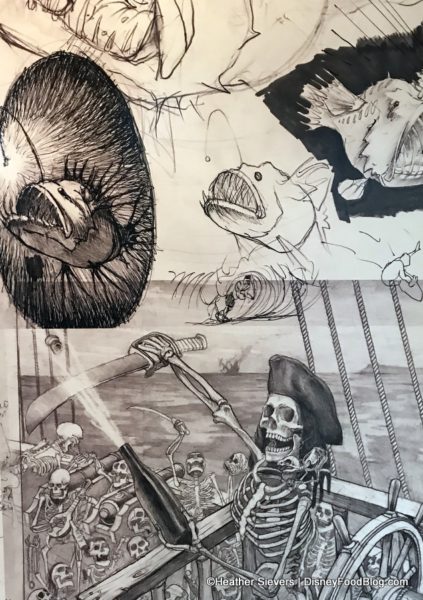 There are two main elements equally at play in the design. One is the nautical theming, which is on display throughout in classic ship pieces as well as bright and vivid artwork.