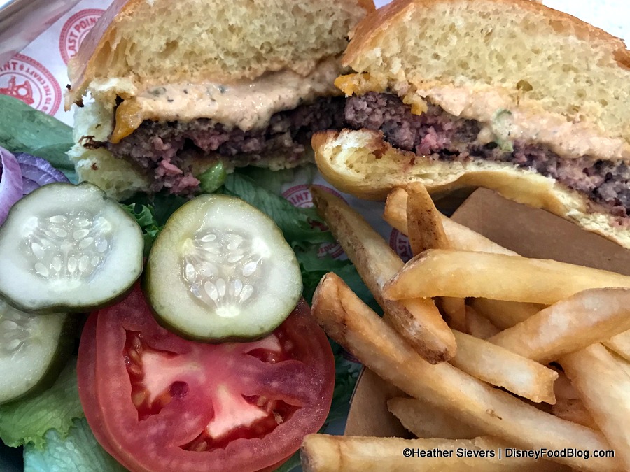 Finally, the Ballast Point Burger (which is served alongside a Smokey Blue Burger and a the plant-based “Impossible” Burger) takes a 7 oz chuck and brisket blend patty and tops it with sharp cheddar, lettuce, tomato, red onion, pickles and remoulade on a brioche bun.