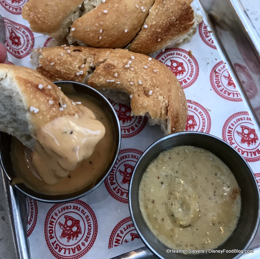 It’s served with “Sculpin” beer cheese and “Fathom” beer mustard for dipping.