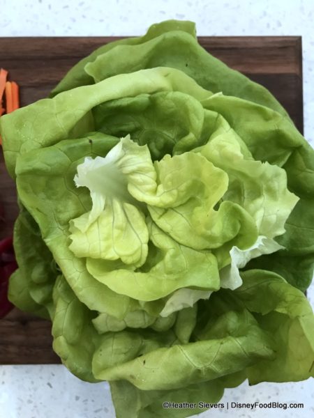 This is plated with “Impossible” (plant-based) protein and peppers with hydroponic lettuce, which has an unbelievably clean, bright, and fresh flavor that is the signature of lettuce that’s never touched soil.