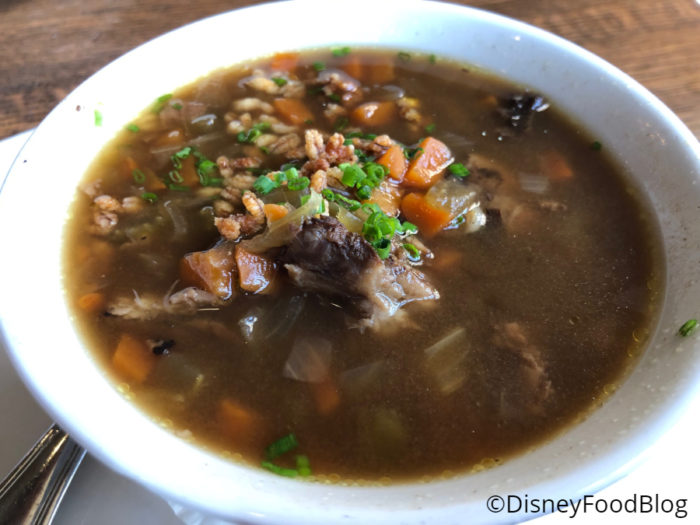 I just had my first experience at the Liberty Tree Tavern just a few weeks ago. Yes, the cheese dip was quite nice, but I have to disagree with you on the Beef Barley Soup. It was my favorite of the whole meal! Now, soup can be different every day if you have alternating chefs and depending on the day of the week, so that may account for the difference. Mine was delicious, and there were huge chunks of roast beef in it (the same delicious roast beef in the platter). Everyone at my table agreed. The pork was indeed dry-dry-dry and the mac & cheese bland. The turkey wasn’t particularly inspiring either. But that soup …. I’ve had dreams about that soup! I’d go back just for that!