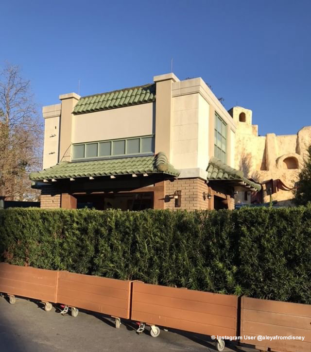 That new structure being added to the exterior of Tatooine Traders is looking very close to completion. The construction scrims are down and have been replaced by hedges on wheels, perhaps a sign they are ready to roll away soon and reveal the new (we think) DVC sales spot.