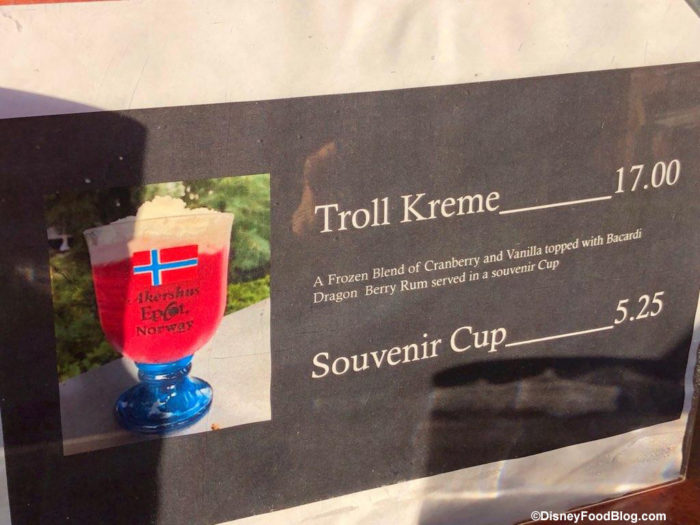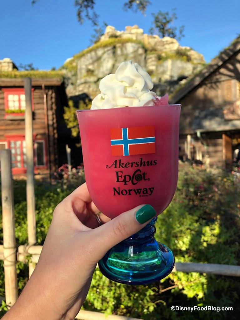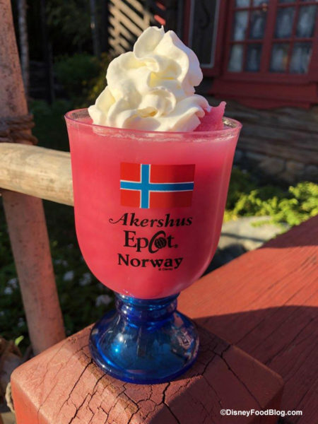 Our stroll around the world today had us sipping on a brand new spiked slush — a Troll Kreme. With a name like that you can guess we spotted this picture-perfect slush in Epcot’s Norway pavilion!