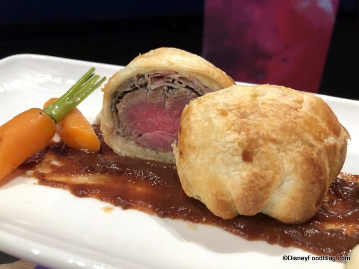 Another savory standout comes by way of The Artist’s Table: Beef Wellington with Mushroom Bordelaise, Fennel Cream, and Roasted Baby Vegetables