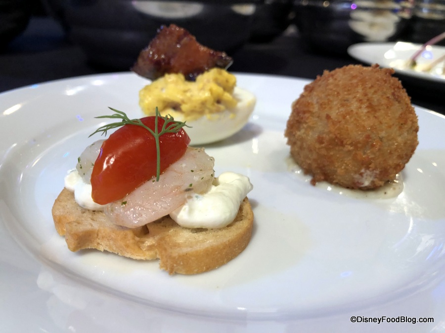 at The Painter’s Palate will feature A Trio of Hors d’Oeuvres: Chilled Shrimp with Cucumber Cream Cheese on a Crostini; Traditional Deviled Egg with Candied Bacon; and Crispy Truffled Risotto Ball with Truffle Aioli.