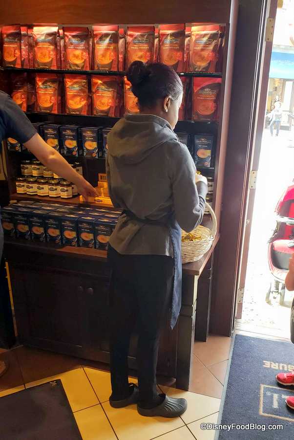 Guests may notice something different the next time they visit Ghirardelli Soda Fountain & Chocolate Shop in Disney Springs. For many years, guests could stroll inside the retail portion of the location and would often find a Cast Member distributing chocolate square samples to guests upon entry.