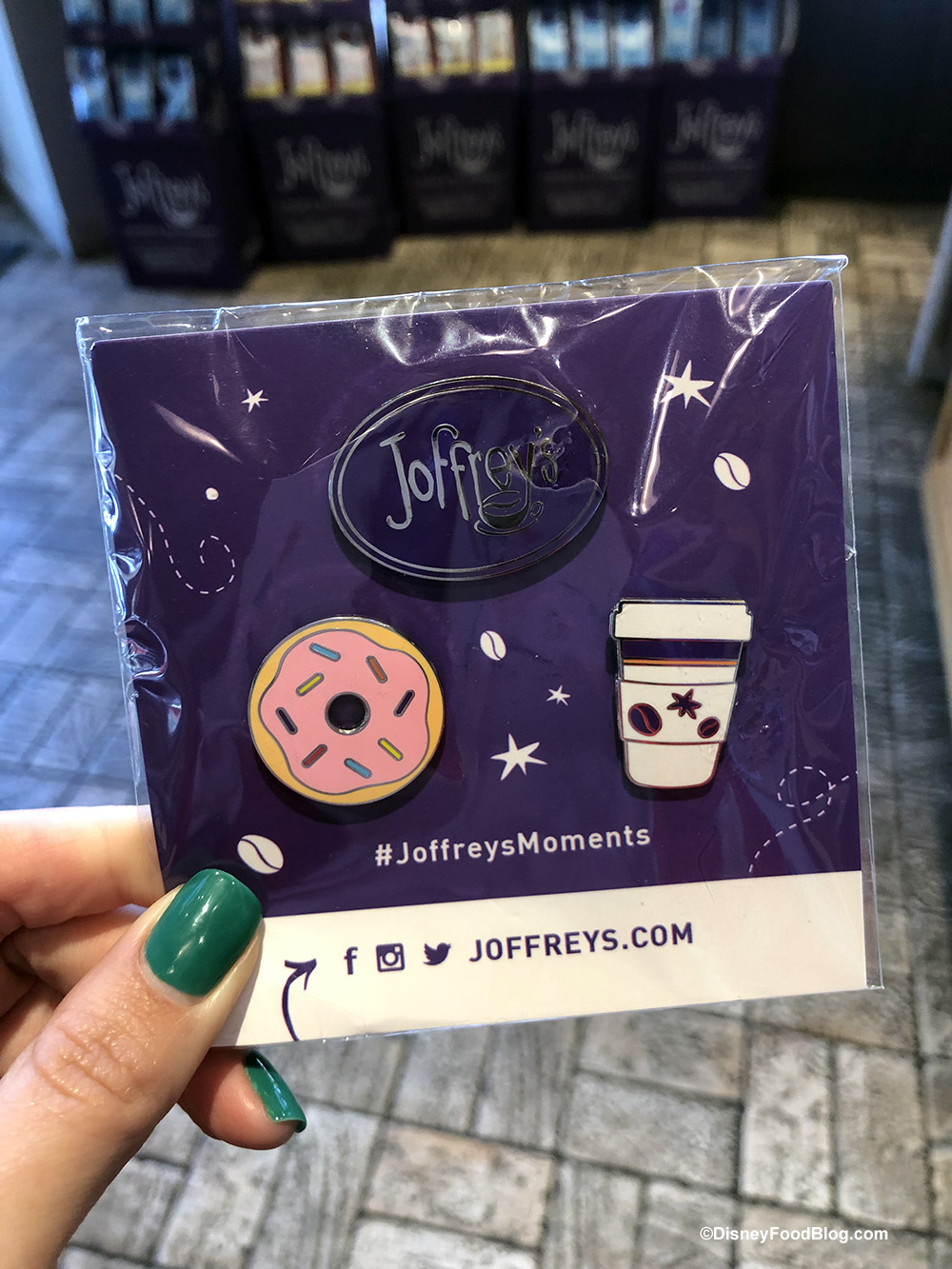 One more Snack item for fans of Joffrey’s Coffee or their giant donuts. Joffrey’s has introduced a pin set that includes a pin of their logo, their giant pink-iced donuts, and of course signature cups!