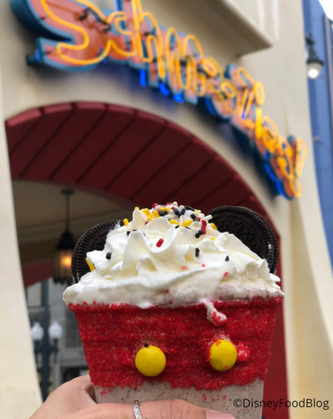 The Mickey Cookies ‘n’ Cream Shake with “90” Sprinkles is super clever. And it’s tasty, too!