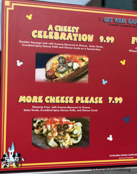 It’s time to Get Your Ears On at Award Wieners in Disney California Adventure Park — and this time, it’s gonna get cheesy! As it should when we’re celebrating Mickey and Minnie Mouse, right? Award Wieners has two options: A Cheesy Celebration and More Cheese Please!