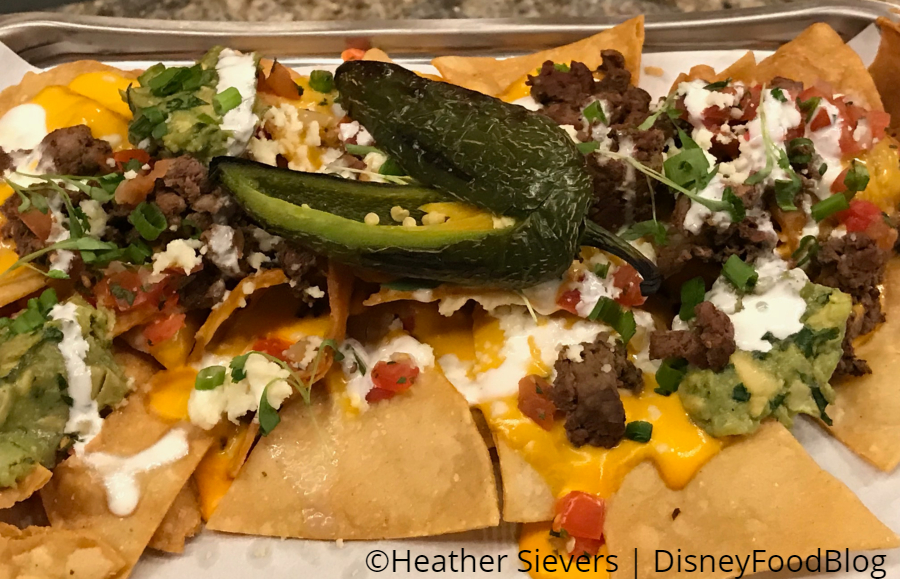 Beef Nachos served with a blistered jalapeno offer some spice (we hope!).