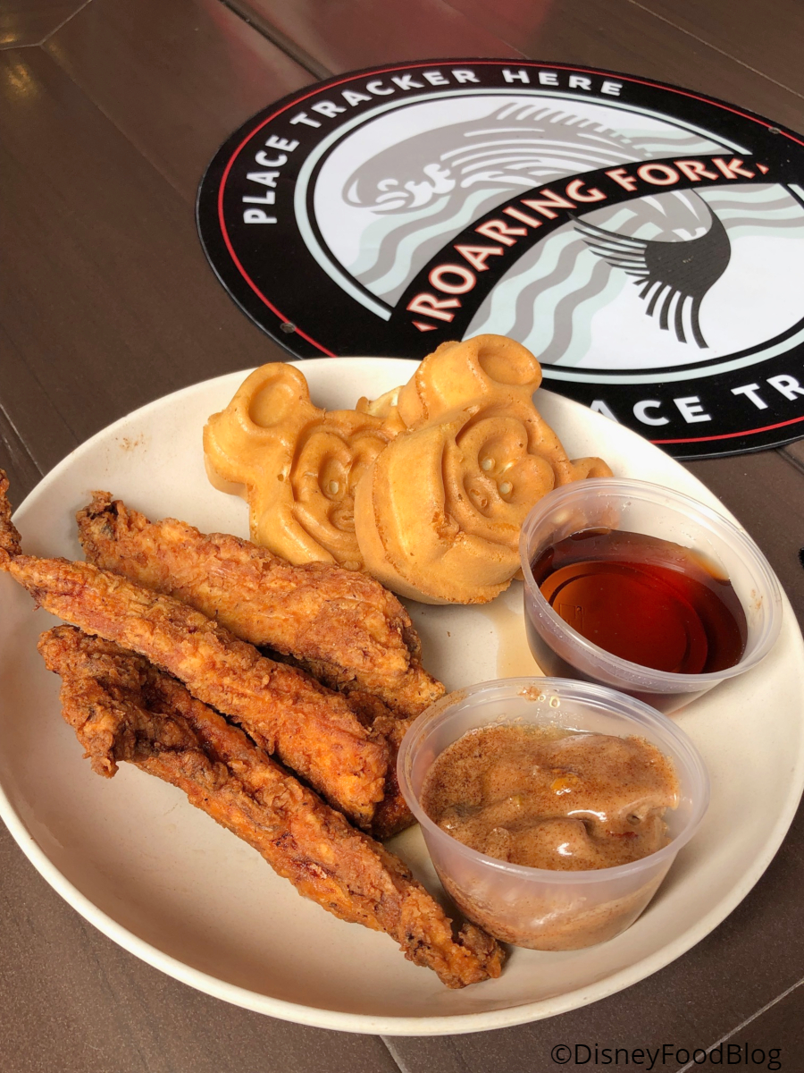 Chicken and Waffles is a common find in Disney World — from Chef Art Smith’s killer version of it over at Homecomin’ in Disney Springs to the sadly lacking version at Ale and Compass in Disney’s Yacht Club Resort. So I wasn’t sure what to expect from Roaring Fork