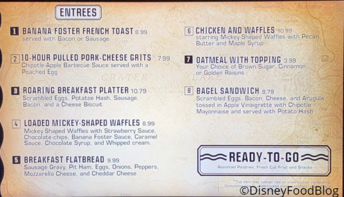How odd that the Roaring Forks Breakfast Platter has potato spelled incorrectly. So not like Disney. Thanks for the great review. Can’t wait to try the chicken and waffles!
