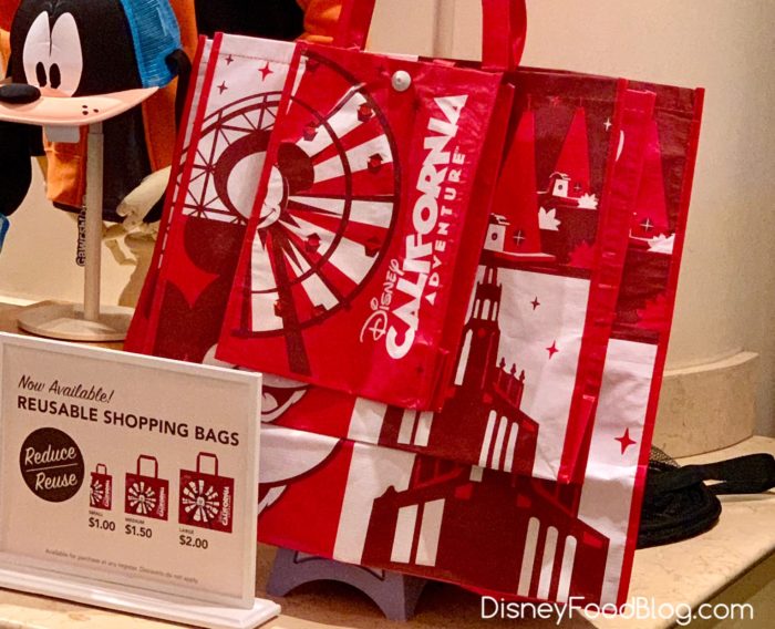 We saw some generic Disney reusable bags when World of Disney re-opened recently. But today in Disneyland we spotted these Disneyland-specific bags.