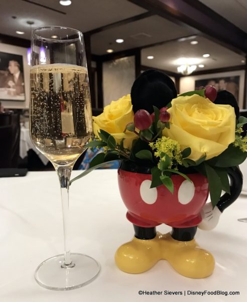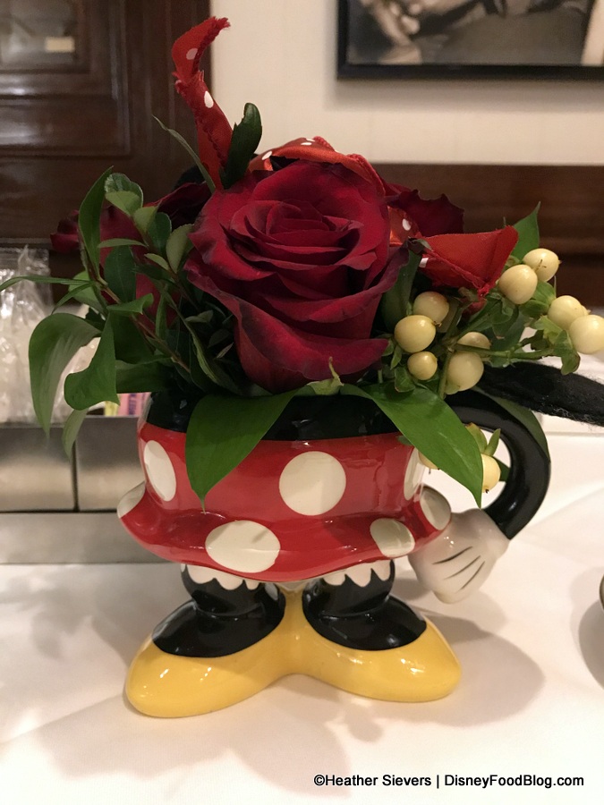 It starts right away with a lovely yellow rose arrangement on the tables accompanied by Mickey’s famous ears, red shorts, and yellow shoes 🙂 .