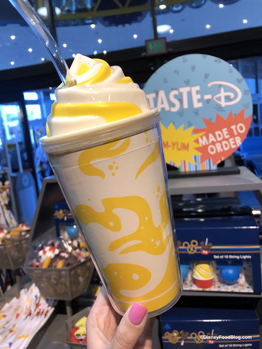 The D-Lish line continues to delight us! We found a Dole Whip Float Tumbler in Mouse Gear, and it even has Hidden Mickeys on it!