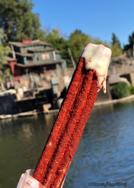 We’re back with another churro review from Disneyland Park and its on-going Get Your Ears On and Valentine’s Day celebration! The Burning Love Valentine’s Churro is available at churro carts near Haunted Mansion and Splash Mountain.