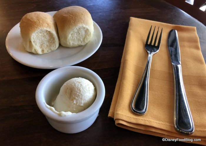 We’re visiting today to explore some recent changes to the menu and to taste what’s new on the menu! Before we dig in, though, the meal — as always — starts with fresh soft rolls served with that completely addictive sweet macadamia butter.