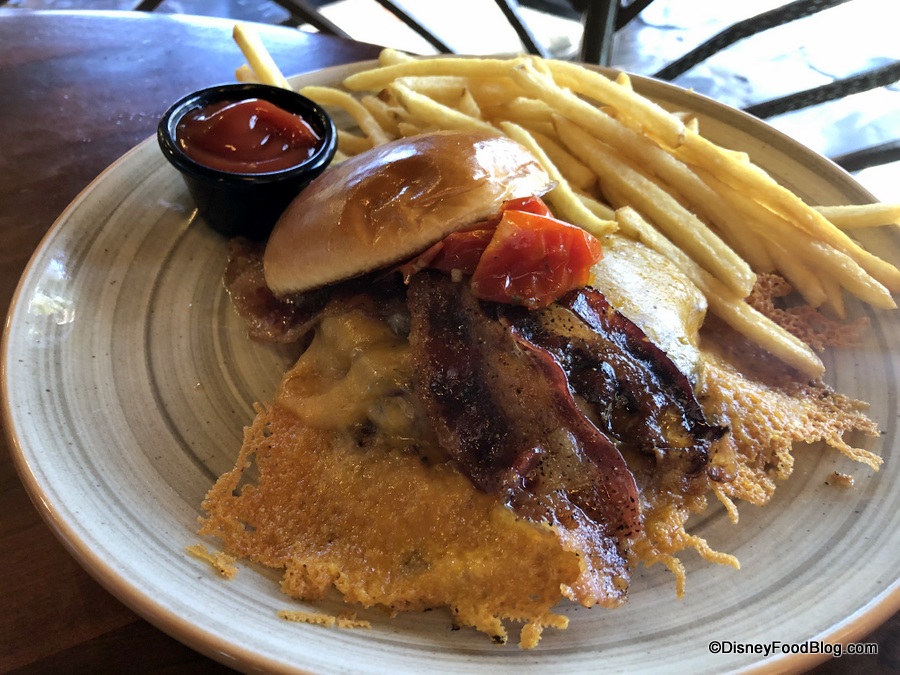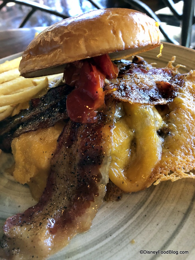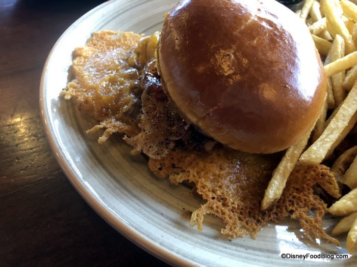 The menu says this burger is “smothered” in crispy cheddar… and it’s NOT KIDDING. Yep — that’s all crispy cheddar! Amazing!