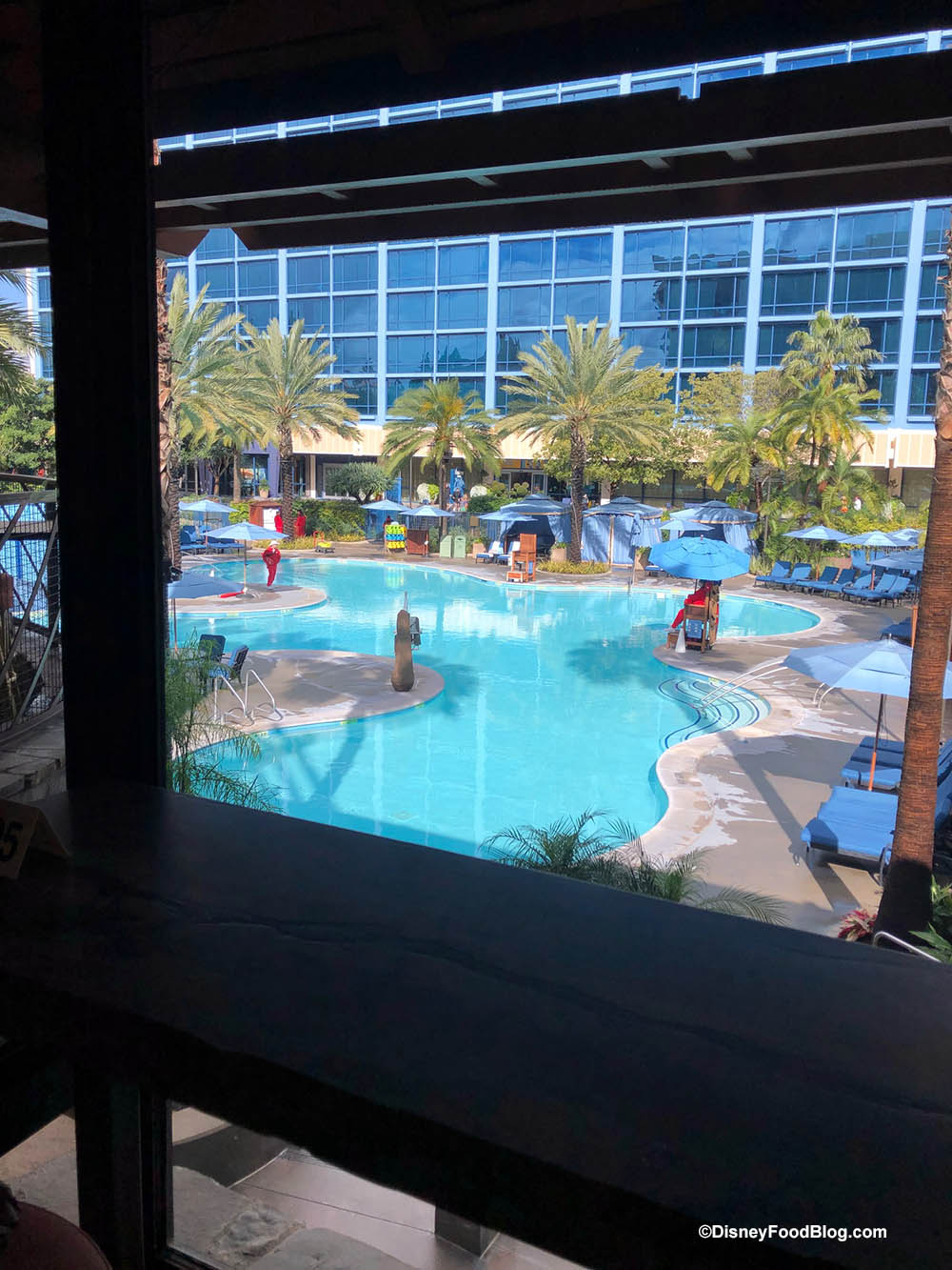 Can you beat the view of the Disneyland Hotel pool, palm trees and sun?