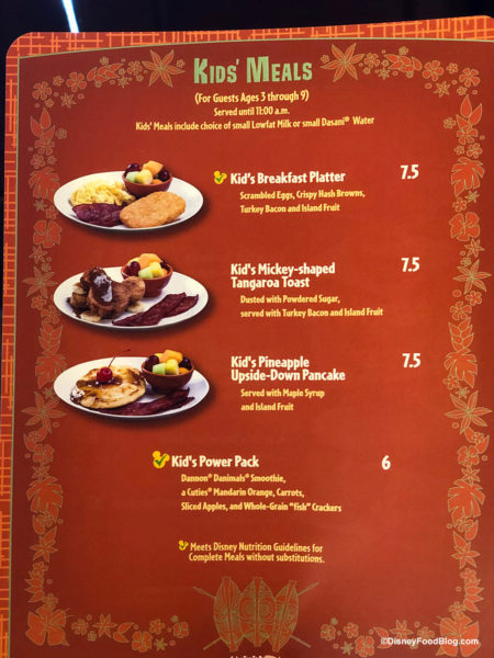 The Kids’ menu sees the Mickey Waffles replaced with the Pineapple Upside-Down Pancakes.