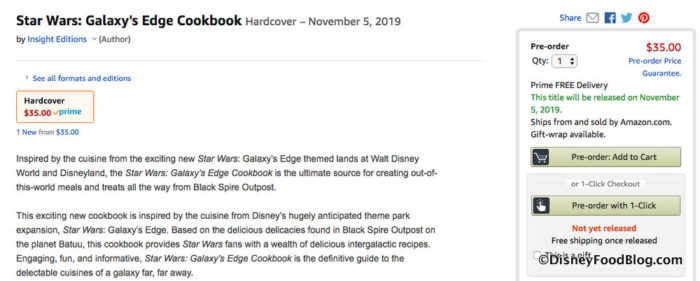 We had a few hints at what might be served at Oga’s Cantina here. But now we’ve seen a Star Wars: Galaxy’s Edge COOKBOOK pop up over on Amazon today.