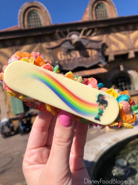 This adorable and decadent treat was a 2018 Mickey’s Very Merry Christmas Party exclusive — meaning you could only get it if you attended one of those parties. Someone at Walt Disney World must have loved this one as much as we did, because today we spotted it back in the lineup at Gaston’s Tavern in the Magic Kingdom.