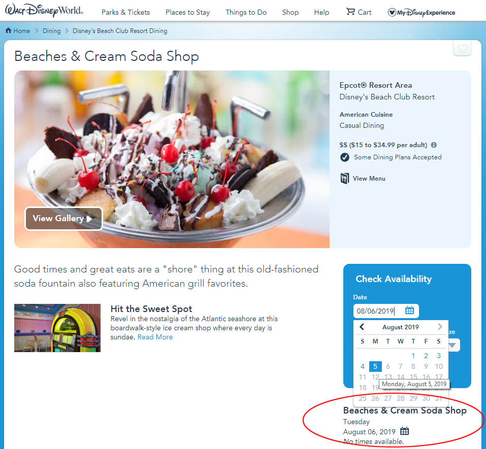 When we called Disney World Guest Services for confirmation, we were told that no set date has been made public for the closure. We’ll keep working on confirming the closing date for you, but in the meantime, it’s looking like August 5th has potential as the final day the ice cream shop will be open. As always, we have to say that it’s not unprecedented for Disney to close off reservations for a location for weeks or months, only to open them up again a few days later. So there’s hope for those of you headed to Disney in mid-August.