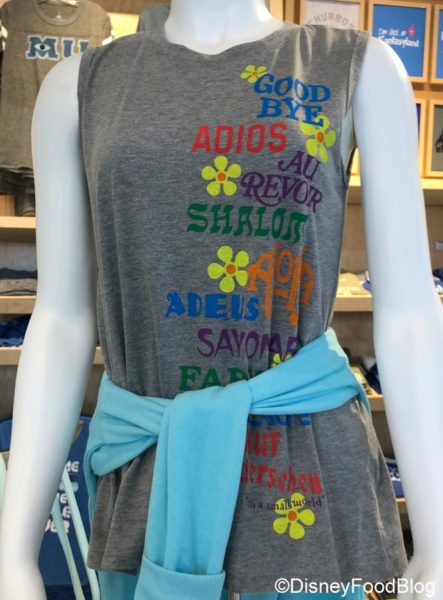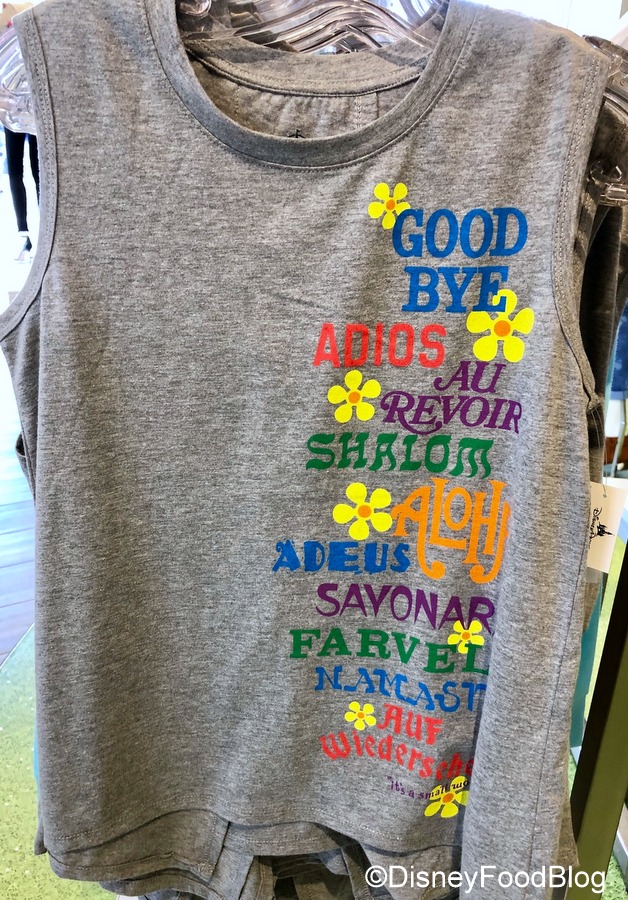 Capturing the font of beauty that is the goodbye signs at the end of the ride: this awesome “it’s a small world” Goodbye Tank Top!