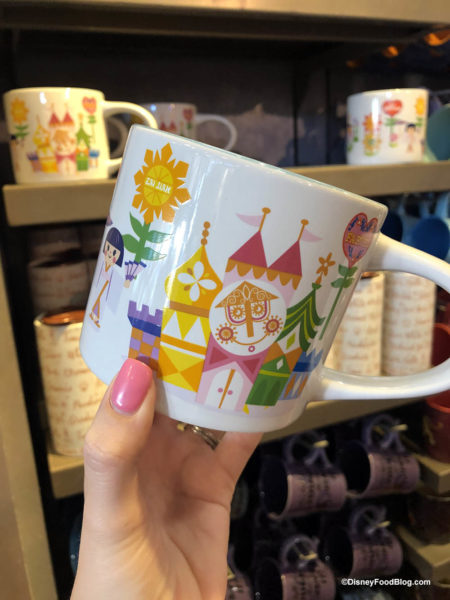 Susan, ShopDisney has a variety of “it’s a small world” merchandise, but I don’t see the mugs. You might have luck with other sellers online (but they might be pricier).