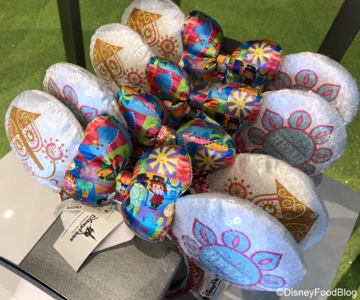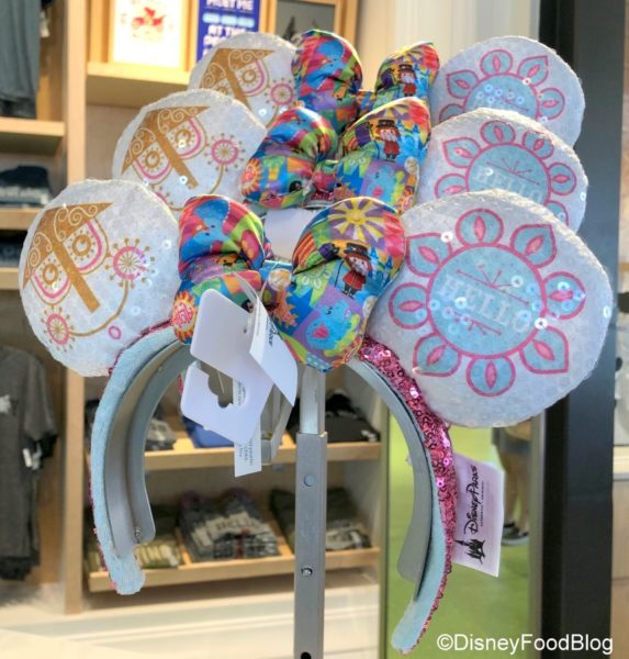 We’re going to start with the “it’s a small world” Minnie Ears, which we just love so much. The colors, the design, the three-dimensional bow: everything about this is on point.