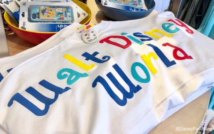 the “it’s a small world” Spirit Jersey is one of our favorites! Check out the brightly colored Walt Disney World along the upper back! So fun and colorful!