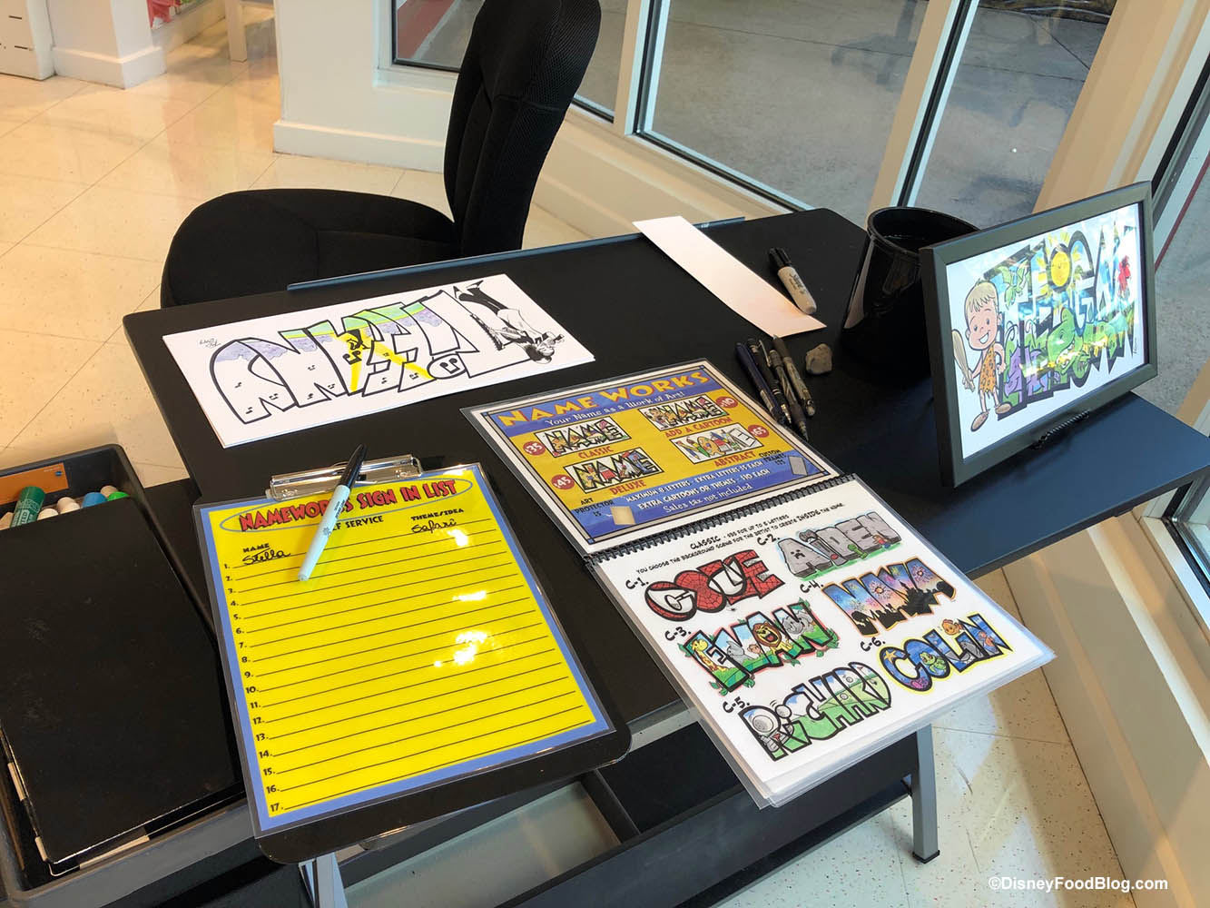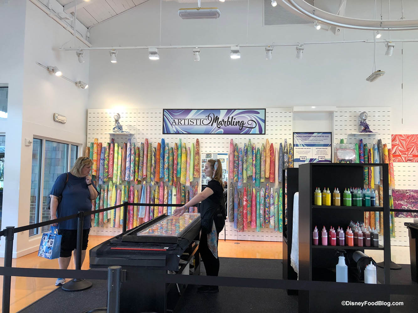 You’ll recognize the caricatures, name art, and artistic marbling from various locations around the parks and resorts as they, and the new pop-up location, are run by the Artistic Talent Group. Take a tour with us of this new location!