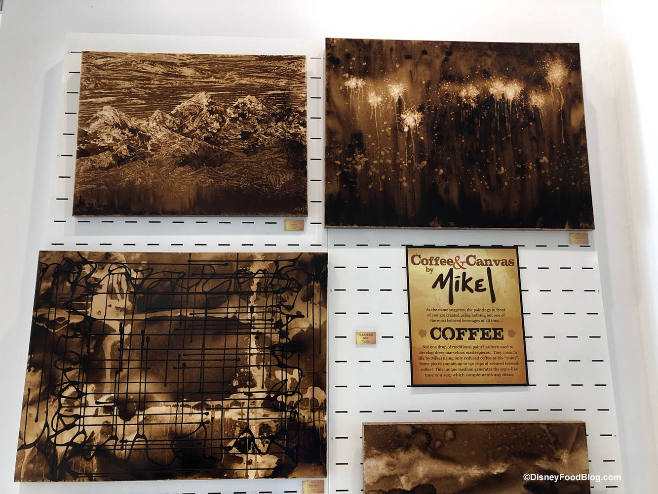 The Art Corner also has an area dedicated to coffee art — that’s right, art painted by the artist Mikel with coffee instead of paint!