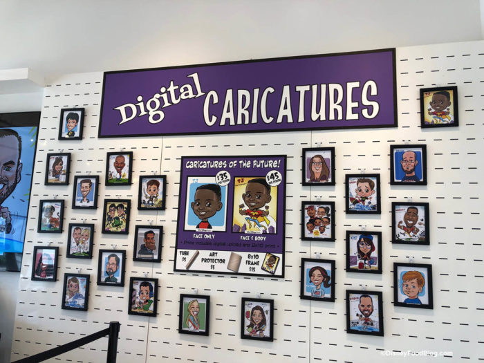 If you want a fun portrait of yourself try out the digital caricatures that are offered here. Instead of drawing your caricature with markers on paper, this new option has the artist drawing your caricature on a screen and printing it out for you digitally — as the sign says they are “Caricatures of the Future!”