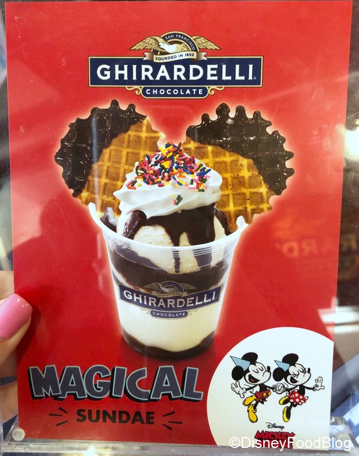 But then… it was gone. For weeks. Until it then appeared at Disney California Adventure’s Ghirardelli location, rebranded as the Magical Sundae. Same great ice cream, hot fudge, and chocolate-dipped waffle ears, new name!