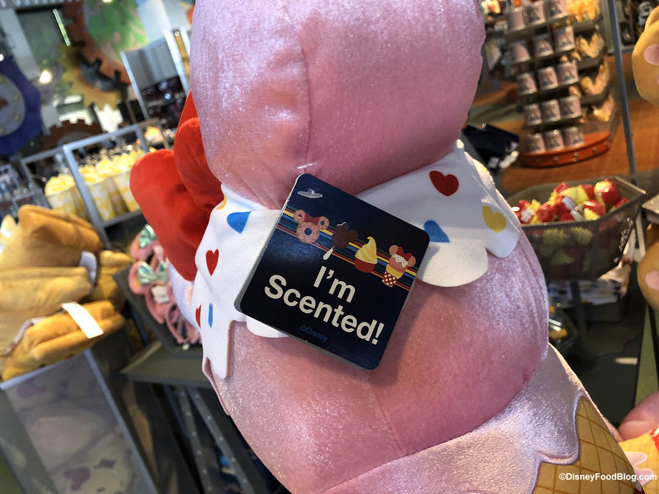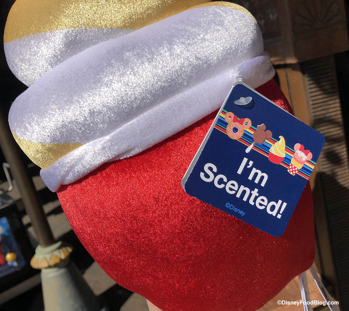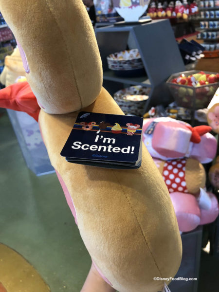 You’ll notice the tag says, “I’m Scented” — we didn’t find the Dole Whip pillow had much of a scent to it on our visit, but we expect it to smell like pineapple. Have you gotten a chance to check this one out? Let us know what you think of the scent in the comments!