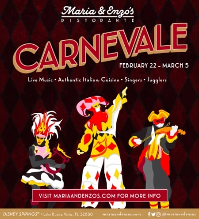 is a traditional winter festival that is Venice, Italy’s, equivalent of Mardi Gras, and Maria & Enzo’s Ristorante is bringing the party to Disney Springs!