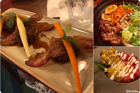 We recently shared a review of the new menu items at Kona Cafe at Disney’s Polynesian Village Resort – and we asked our Twitter followers if they’d had a chance to check out any items! My good pal Eric Chu said he ordered the Pork Wings, Pork Belly Dashi Bowl, and Tuna Poke Bowl.