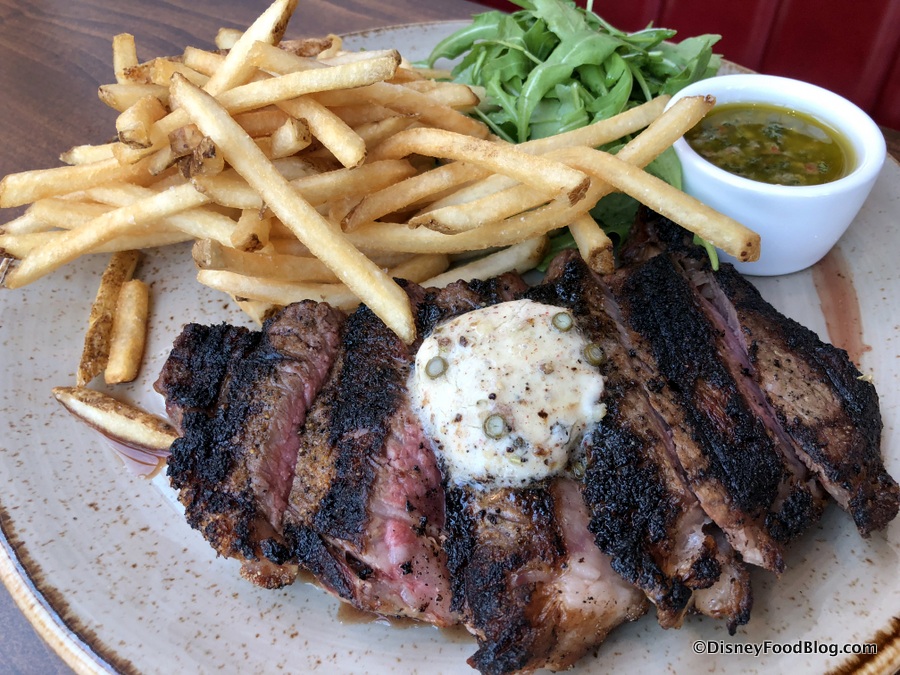 One of the newest entries in the best one-credit DDP values is Wolfgang Puck Bar & Grill in Disney Springs. The novelty of trying a new restaurant is a great reason to use dining credits — particularly if the food is high quality and the cost is a good value. Wolfgang Puck Bar and Grill fulfills all of those requirements! We loved our first visit here, particularly the chart-topping Mesquite Grilled NY Strip Steak Frites ($38)! With cocktails ringing up to $15 and desserts running $10, a meal here could run you over $60. A great monetary value in a super stylish restaurant with awesome food? Check, check, check!