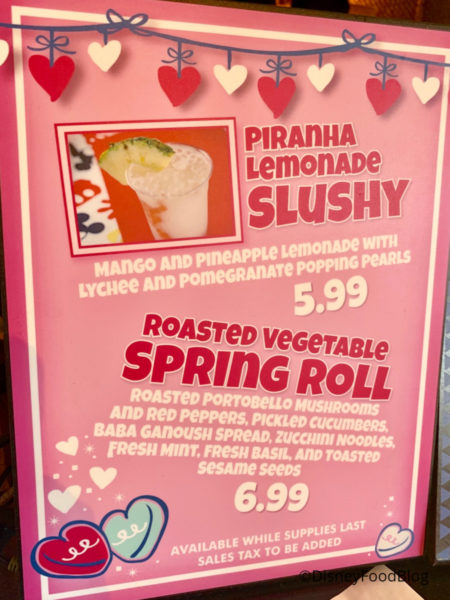 is an awesome (and awesomely themed!) spot to grab a snack, and for Valentine’s Day (being celebrated for a few more days at Disneyland Resort!), they’ve got two great options. We sipped on the Piranha Lemonade Slushy, and we gotta say: we’re in love!