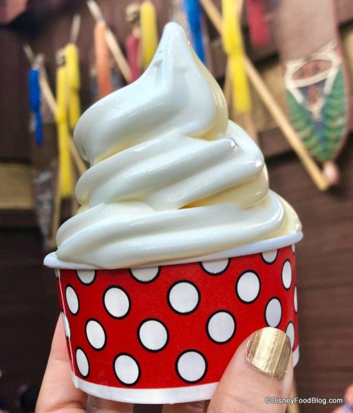 While this is currently listed on the menu, it’s not available until the 24th according to cast members we spoke with today. (Don’t worry — we’ll go back and double check on the regular.) UPDATE 2-18-19 1:46PM: Disney has removed the Hei Hei cone from the online menu as expected — cast members told us that it wasn’t supposed to be on the menu yet. But we still expect it to debut at the restaurant by February 24th!
