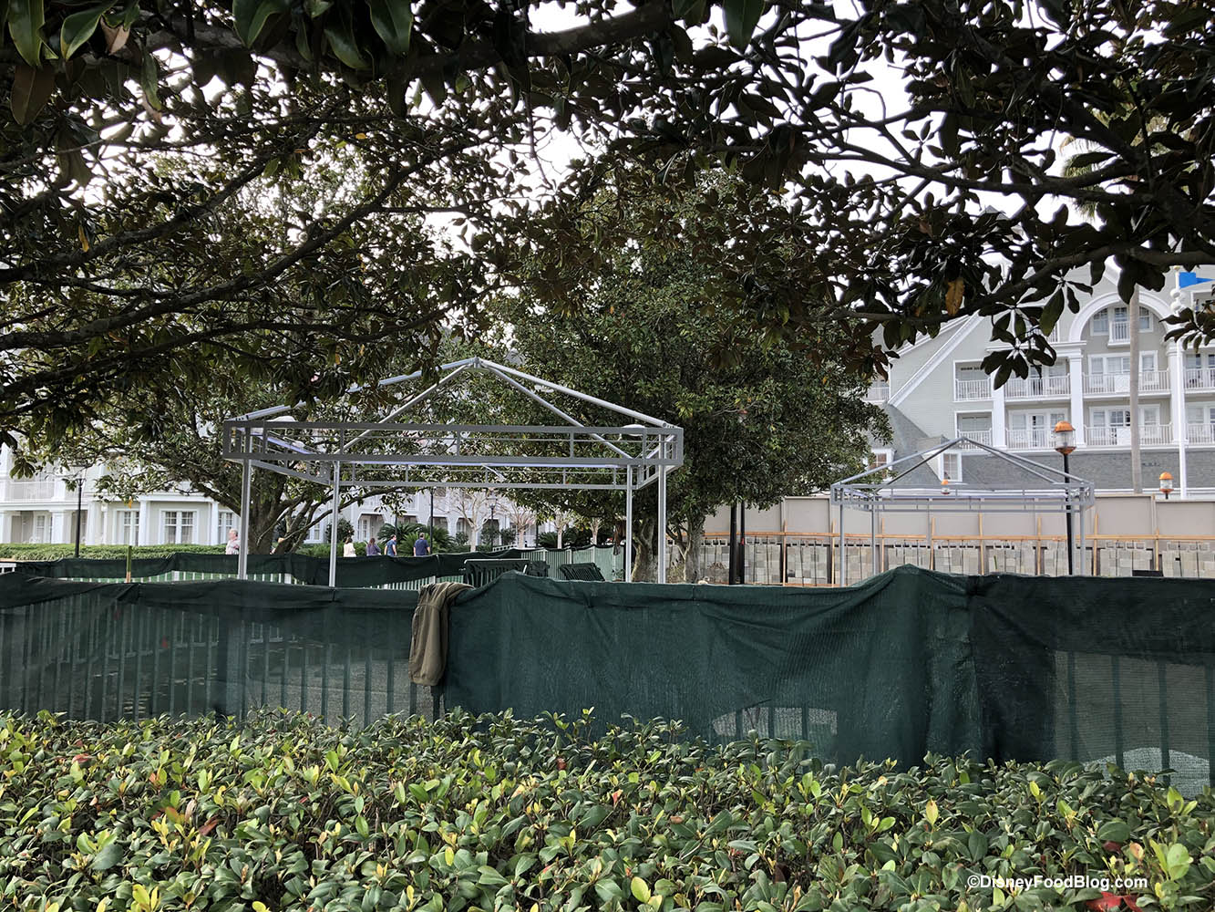The Disney World Yacht and Beach Club Resorts’ shared pool, Stormalong Bay, is seeing some changes in both the menu at Hurricane Hanna’s and lots of construction on new Cabanas being added to the area.