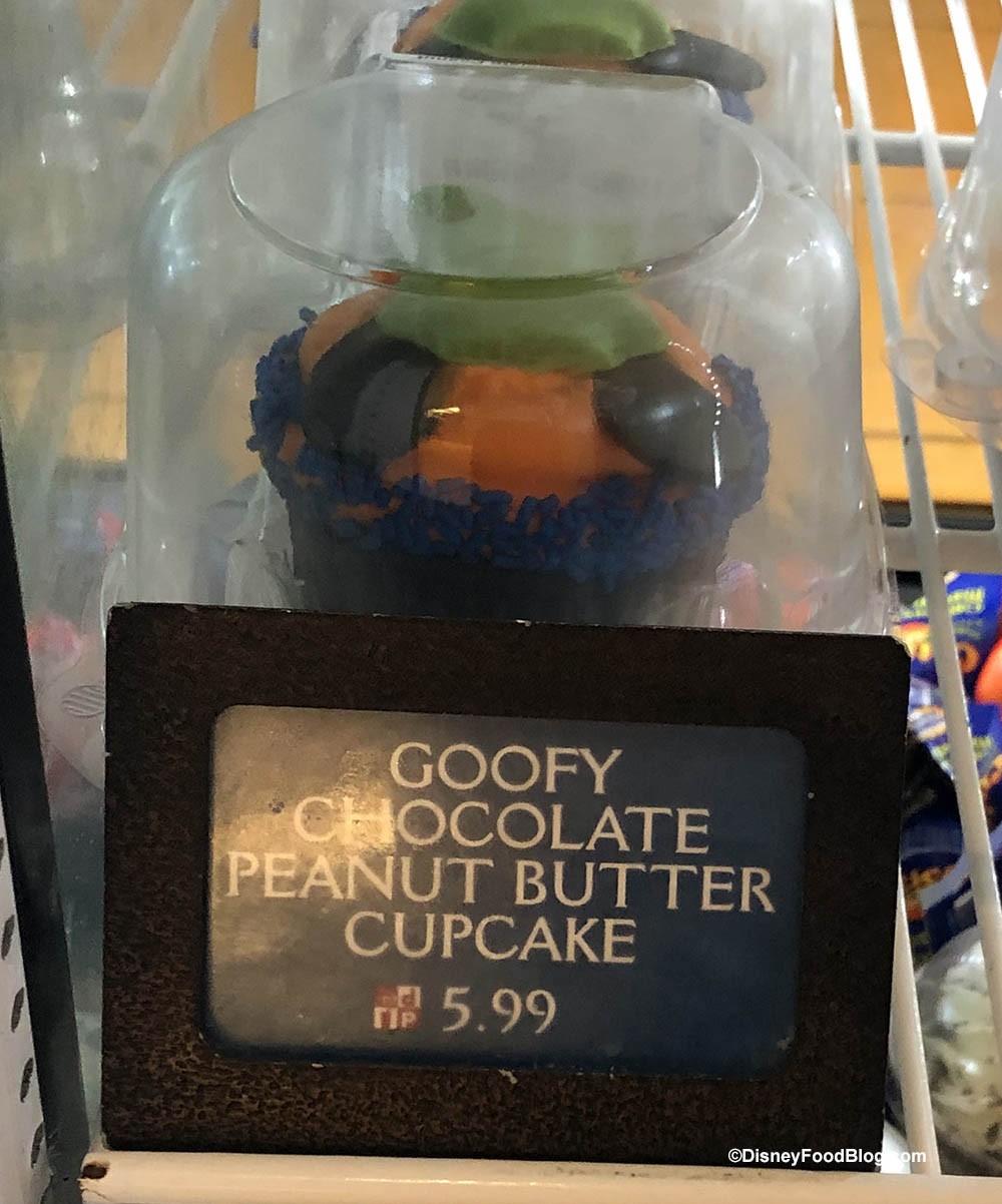 The Goofy Chocolate Peanut Butter Cupcake was found in the Beach Club Marketplace (and has actually replaced the previous chocolate peanut butter cupcake in this location) on our visit, but was not found in the Yacht Club Market.