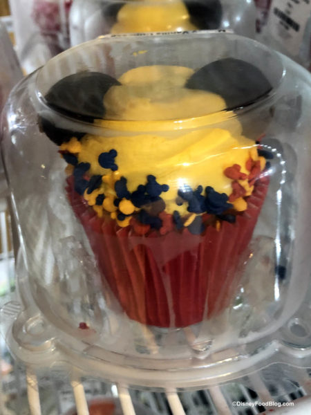 Mickey has a Vanilla Cupcake that represents his yellow shoes quite well with all of that yellow frosting!
